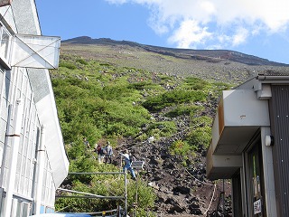 左手に六合目の山小屋