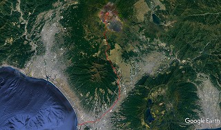 川沿いの道を富士山を目指して