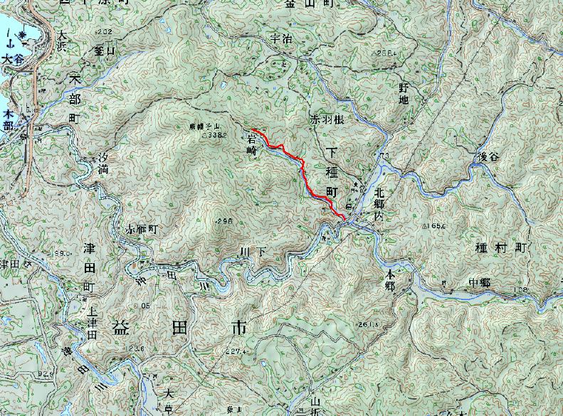 左の地図の赤い線がいつも歩くルートである。あじさい園の先に烏帽子山の登山口がある。赤いルートは2Km弱なので散歩がてら歩くとちょうどよい。