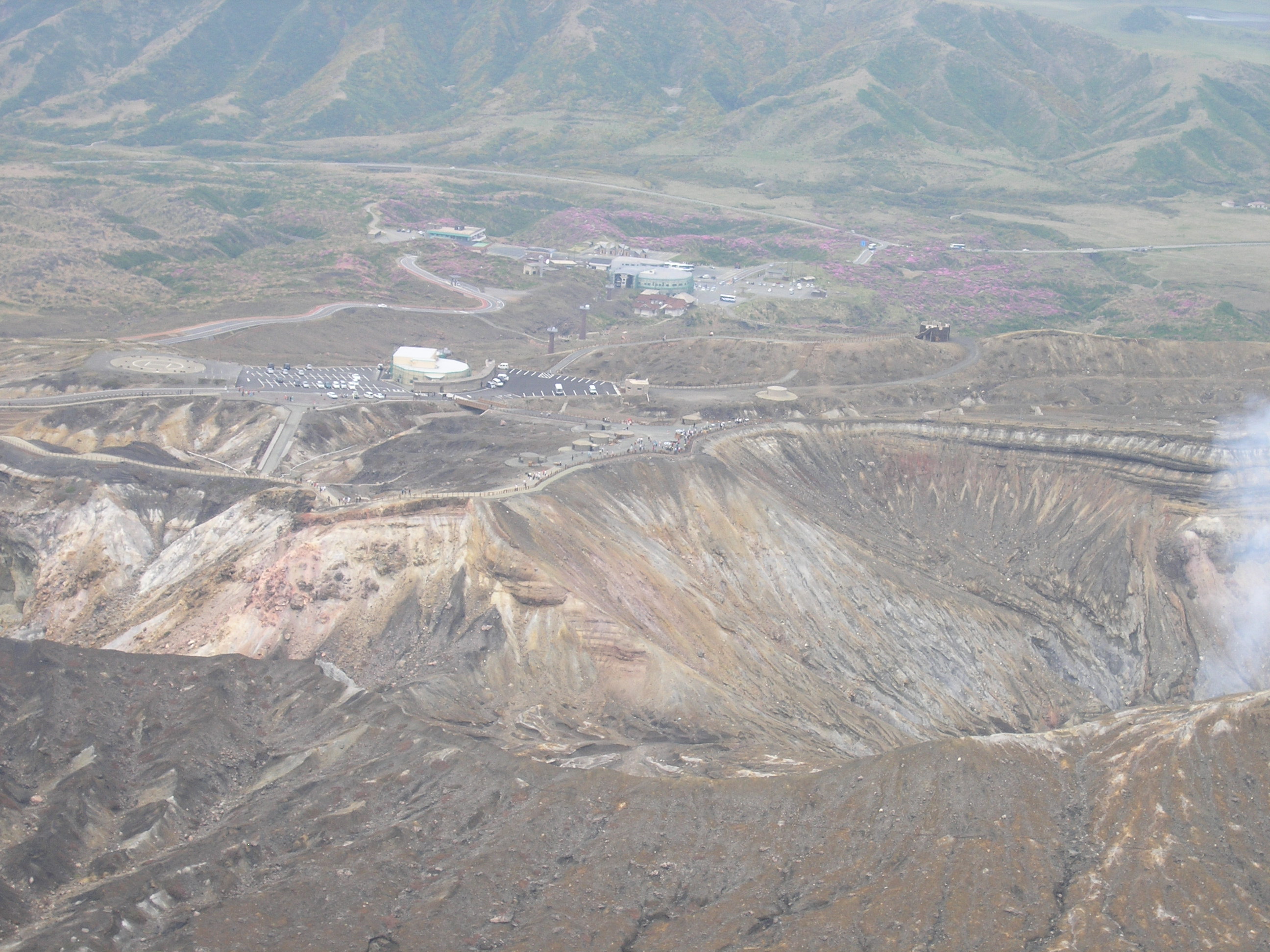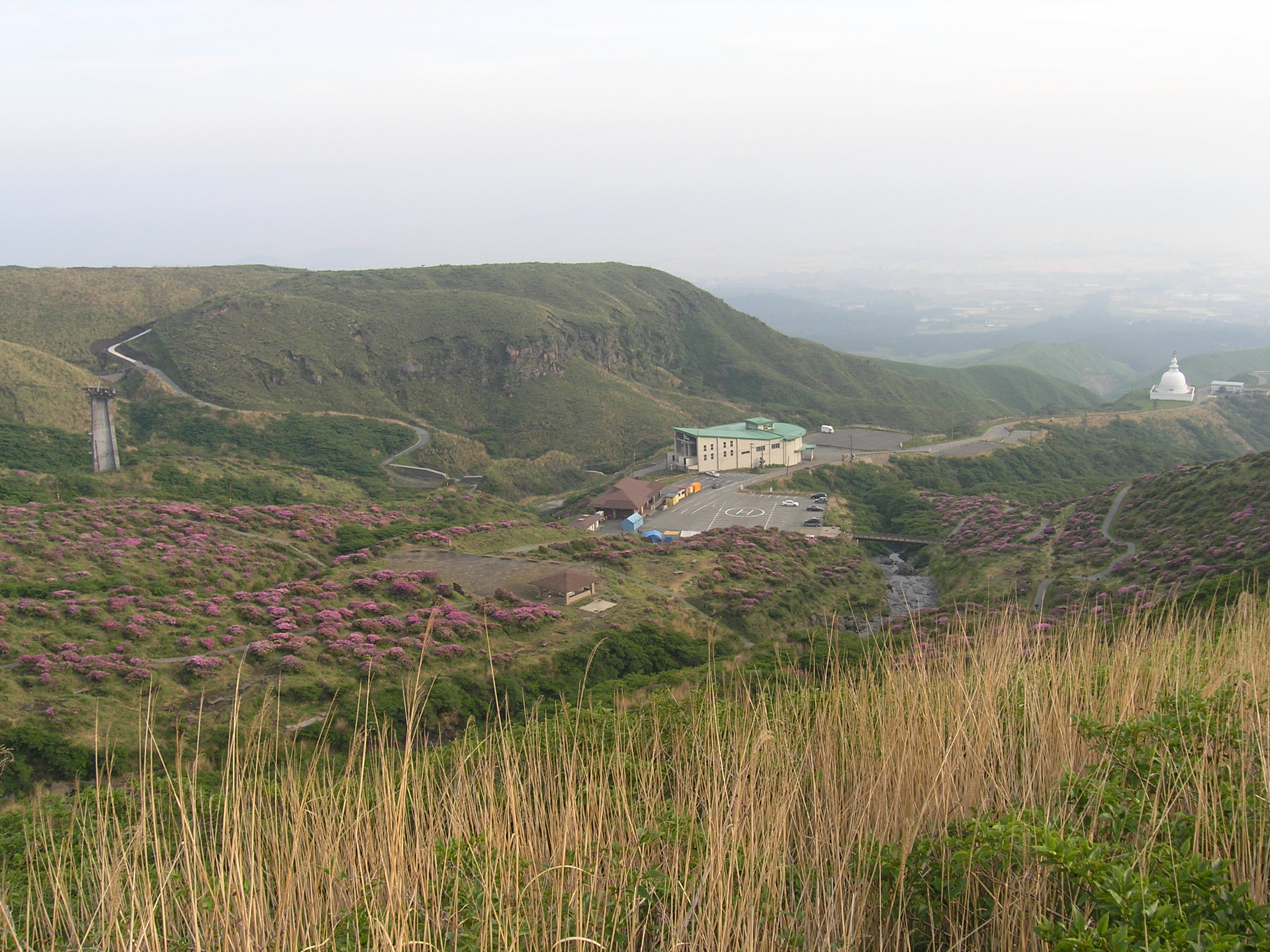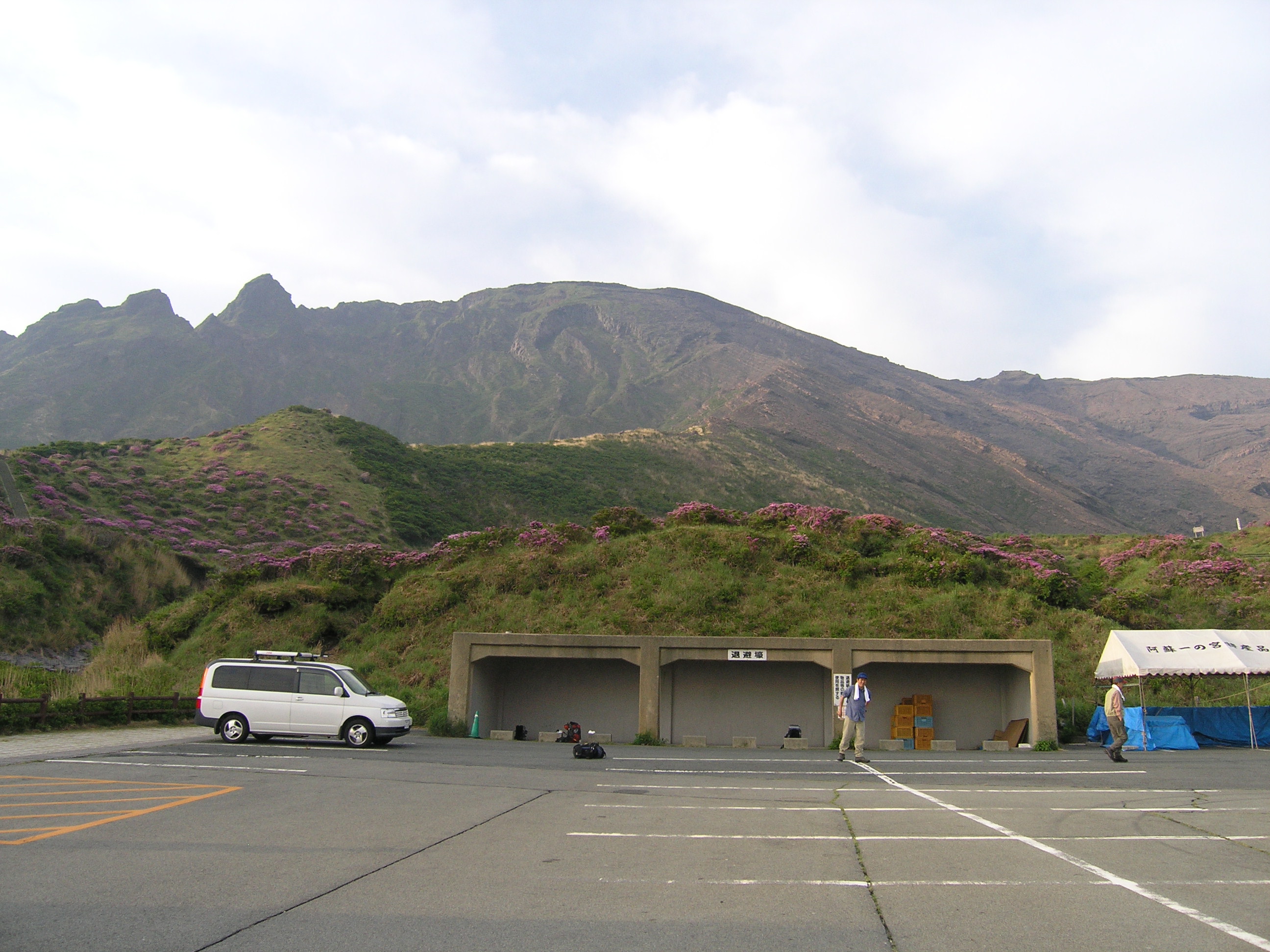 | 途中、国東半島の熊野磨崖仏を見て阿蘇の南側の月廻り温泉館の露天風呂から阿蘇の山並みを眺めて入浴。 その後、仙酔峡の駐車場(避難壕を利用させて頂ました)晩餐、テント泊。 6:20登山開始、駐車場付近はミヤマキリシマが9部咲きぐらい。 8:40尾根→8:55天狗の舞台(休憩、捕食)→ 9:55月見小屋→10:15高岳→10:40中岳→砂千里ヶ浜→12:00火口西→12:30阿蘇山西駅(予約したタクシーにて仙酔峡の駐車場へ(約5000円) 仙酔峡駐車場満車 |