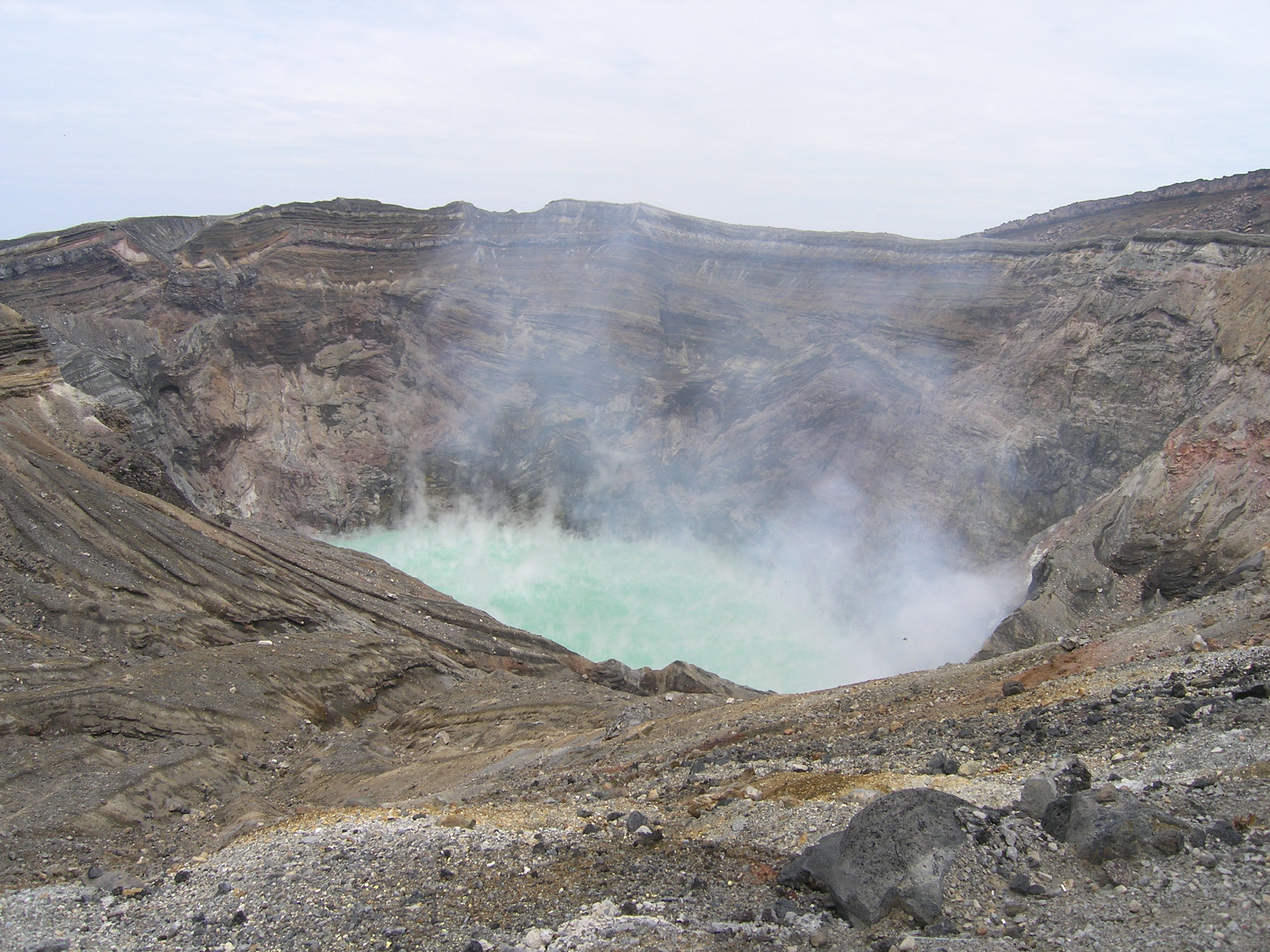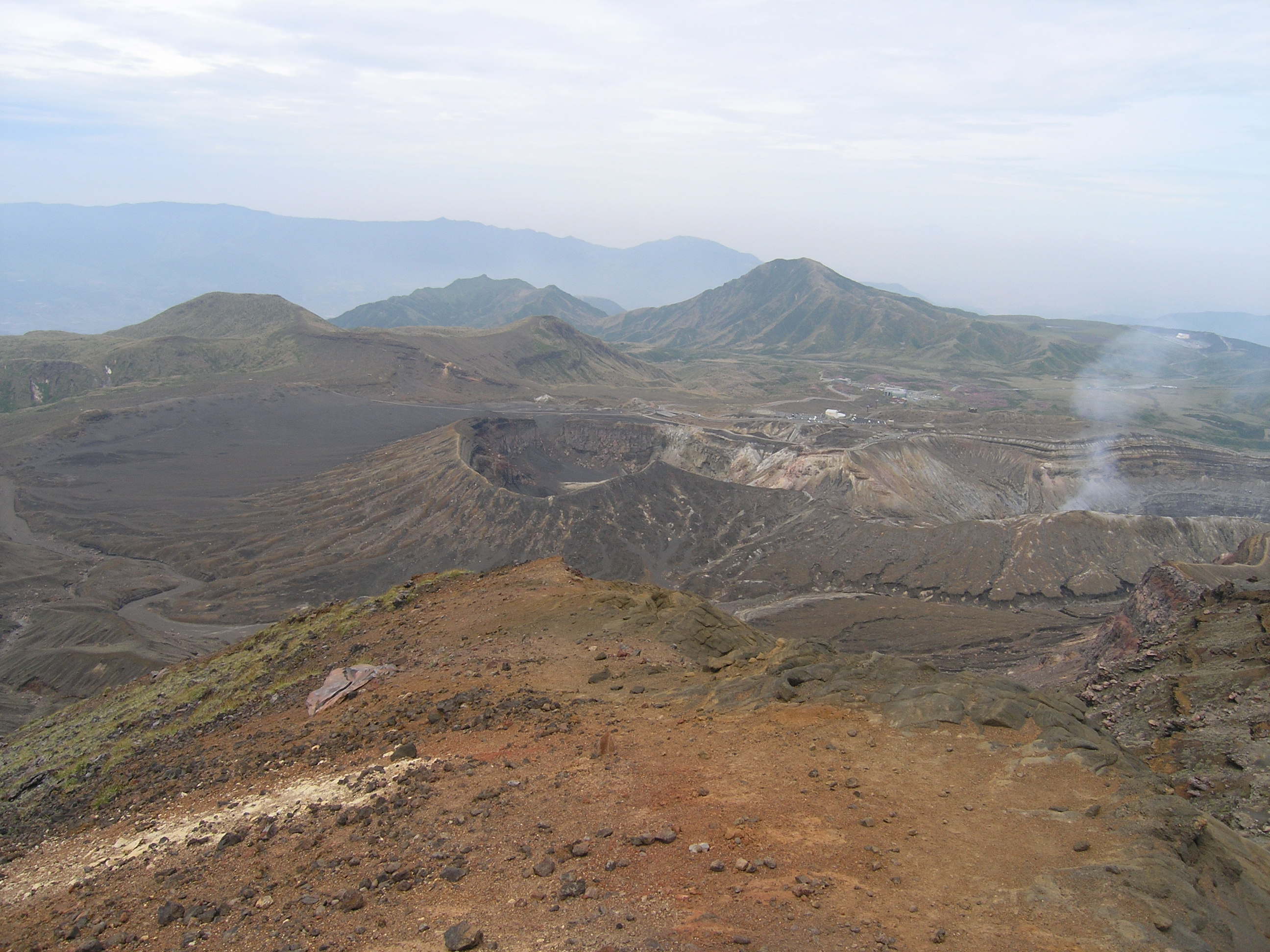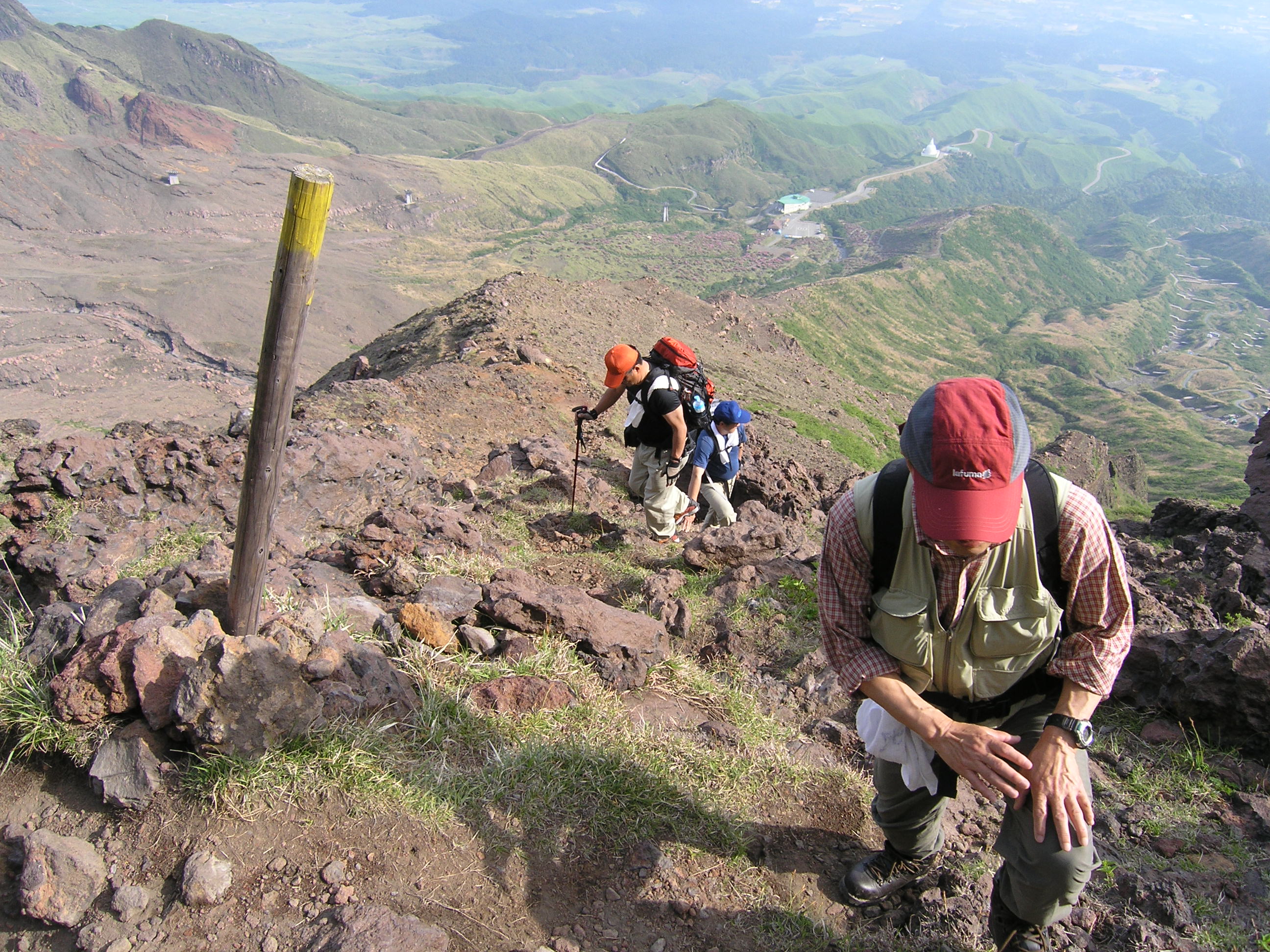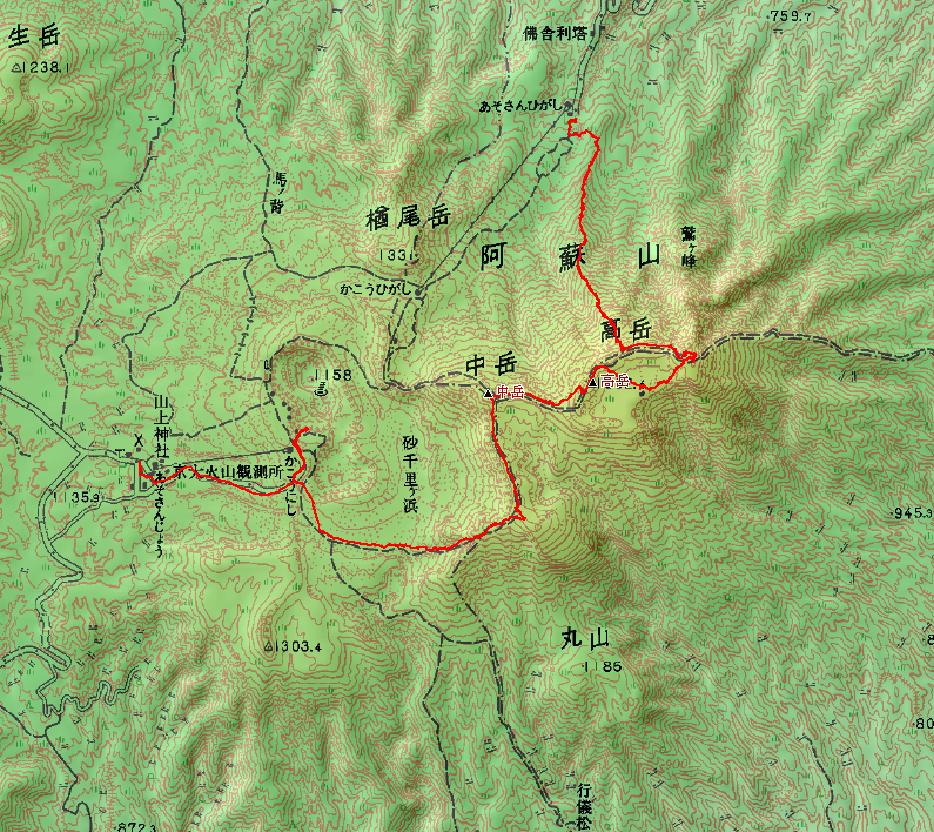| 途中、国東半島の熊野磨崖仏を見て阿蘇の南側の月廻り温泉館の露天風呂から阿蘇の山並みを眺めて入浴。 その後、仙酔峡の駐車場(避難壕を利用させて頂ました)晩餐、テント泊。 6:20登山開始、駐車場付近はミヤマキリシマが9部咲きぐらい。 8:40尾根→8:55天狗の舞台(休憩、捕食)→ 9:55月見小屋→10:15高岳→10:40中岳→砂千里ヶ浜→12:00火口西→12:30阿蘇山西駅(予約したタクシーにて仙酔峡の駐車場へ(約5000円) 仙酔峡駐車場満車 |