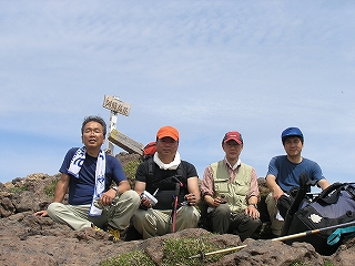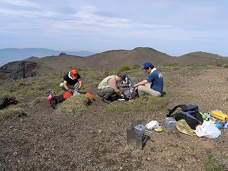 | 天狗の舞台でエネルギー補給 9:14 | 根子岳と後ろに祖母を望む 9:34(大きい写真有り) |