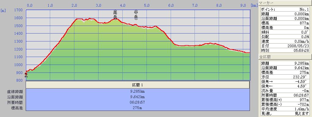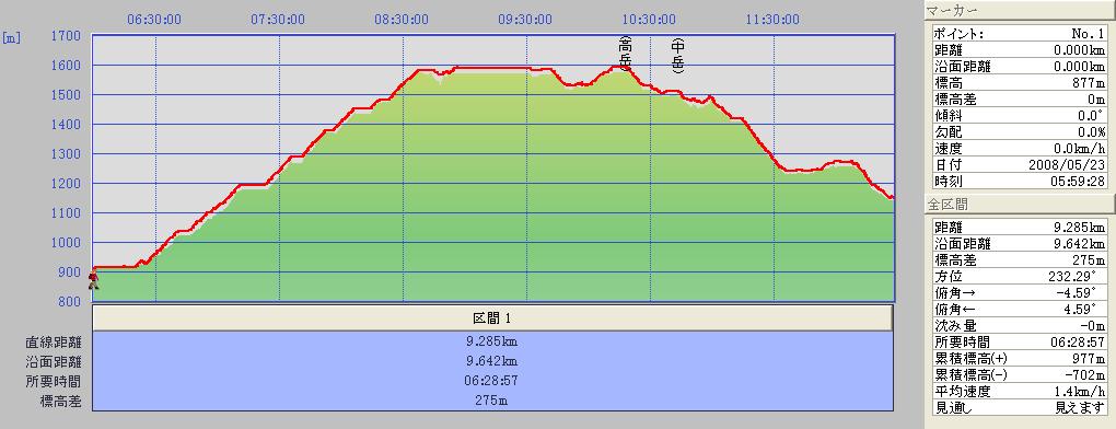 | 月見小屋 9:55 | 高岳山頂1592.4m 10:16 |