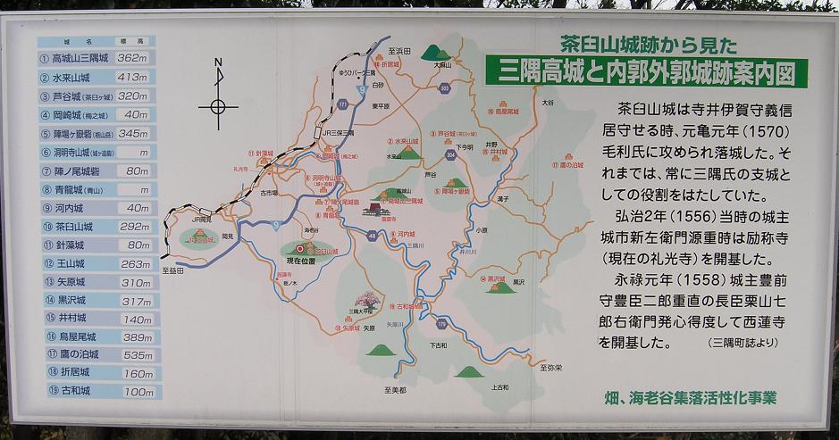浜田市三隅町の三隅高城とその周辺の山城の案内図。
