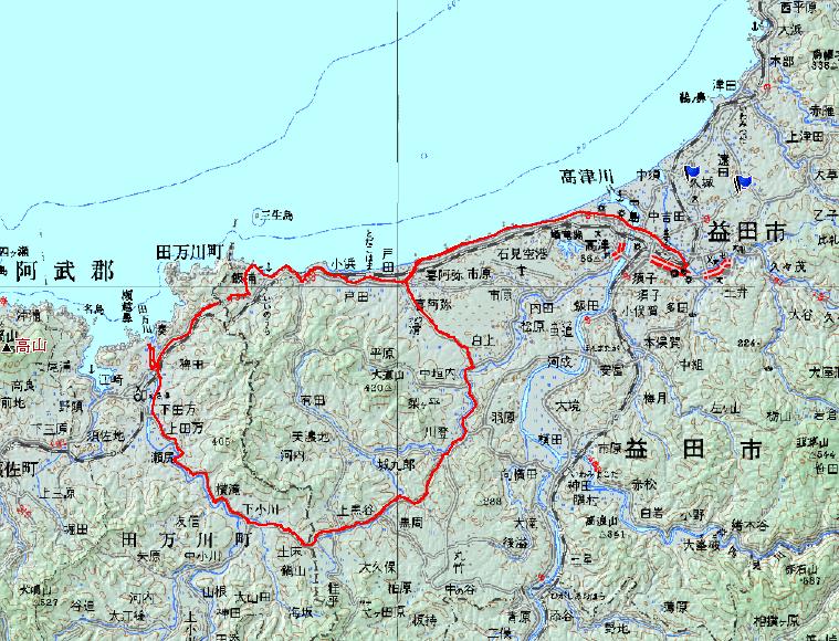 ドリーム島根〜持石〜喜阿弥〜白上〜二条〜小川〜田万川温泉(バーべキュー)〜飯浦〜持石(解散)