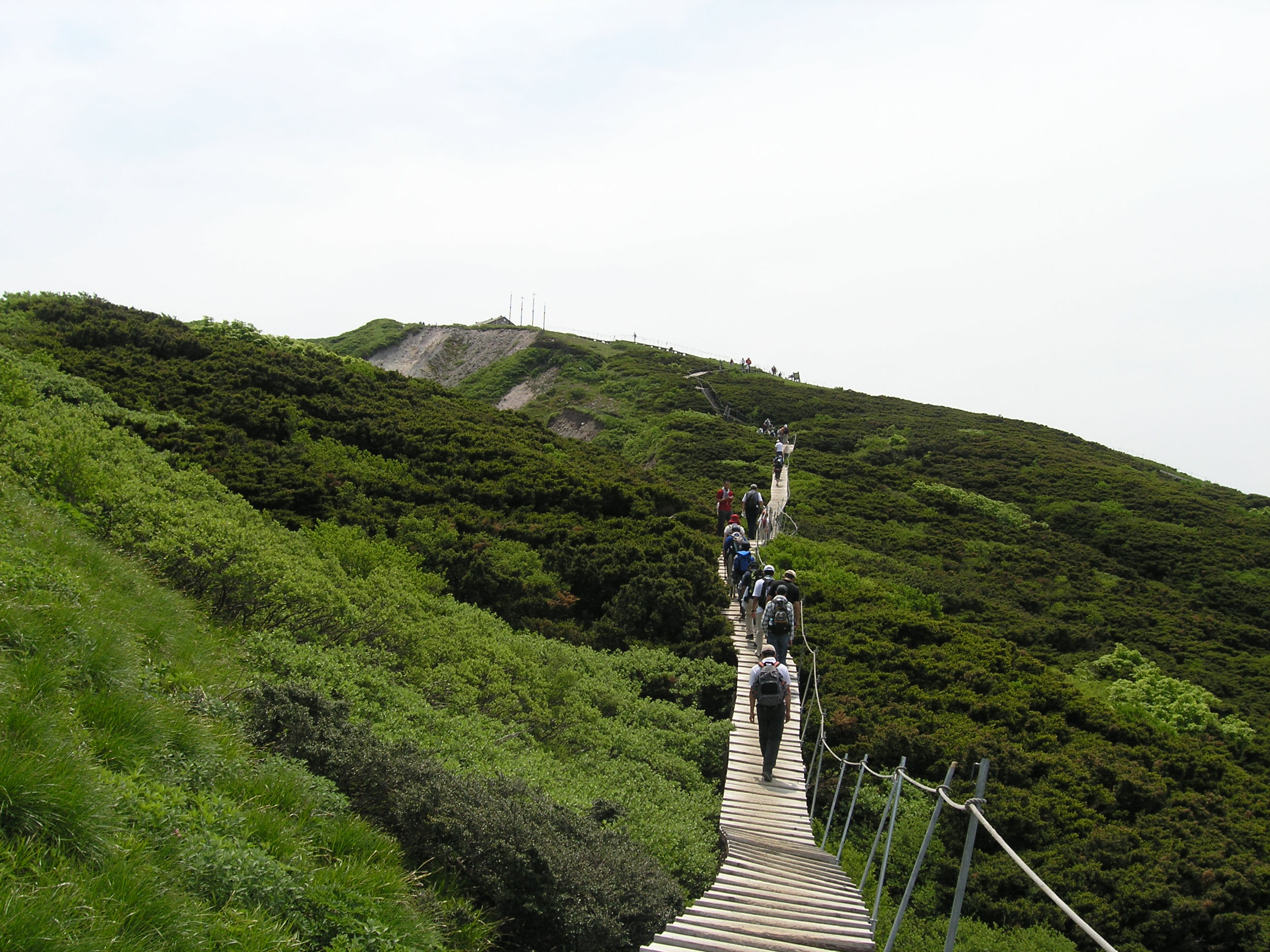 | 大山寺方面を振り返る(拡大写真あり)10:09 | 頂上を目指し木道を歩く(拡大写真あり)10:50 | |