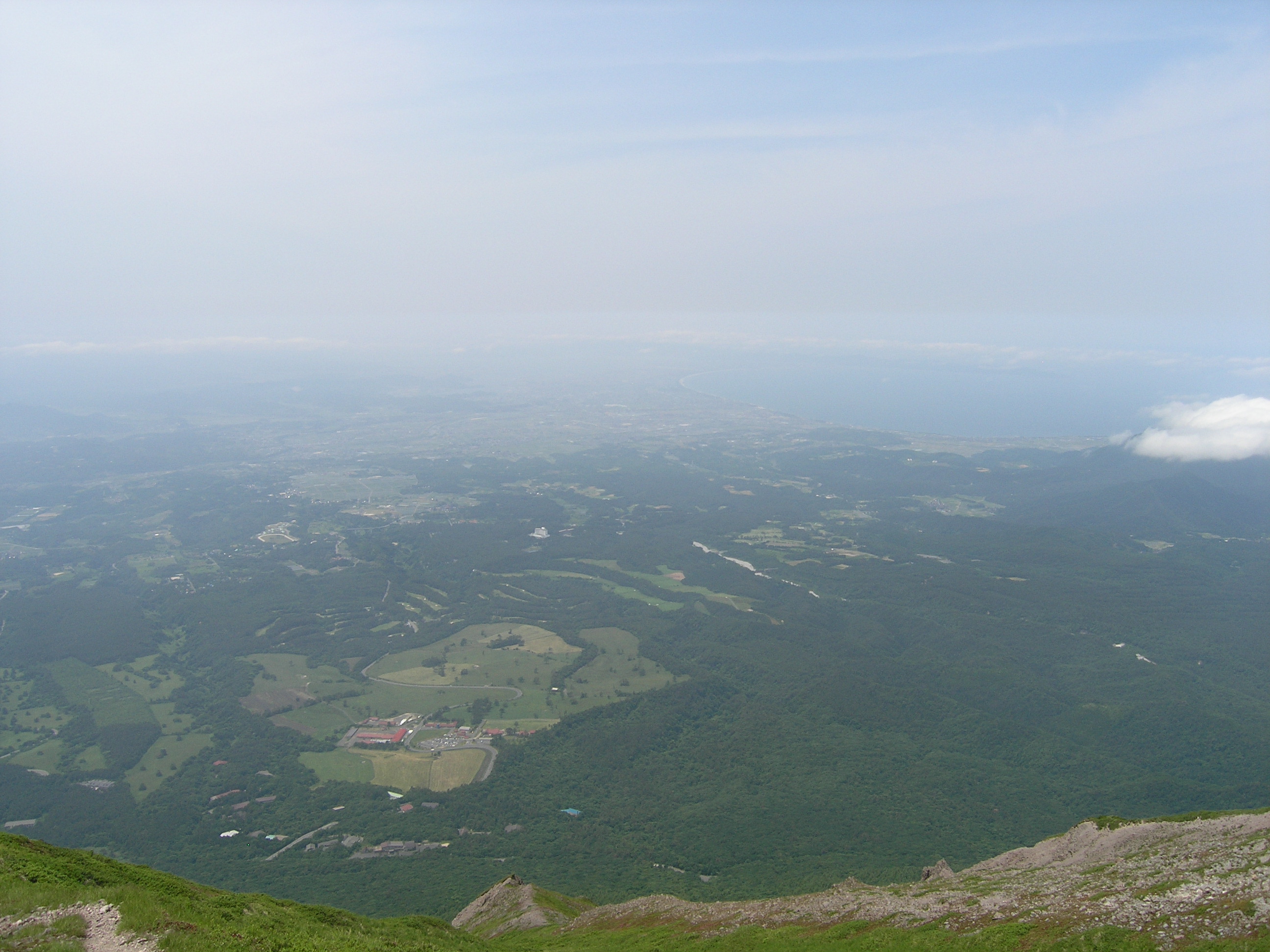 | 米子市方面、かすかに弓ヶ浜。美保関が見える(拡大写真あり) | ||