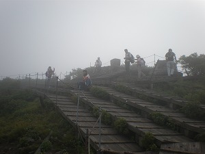 7:48山頂 ガスで遠くが見えない