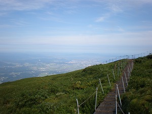 山頂は風が強く、木道が濡れていたので滑らないように注意しながらゆっくり歩いた。下りで大山キャラボクの違うルートを歩いたが下りで滑りやすく気を使った。北側は晴れていて絶景であった。