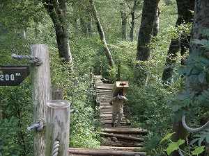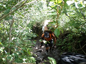 下りでボッカに2人出会ったが圧倒される。登山道が段差が多いので大変だとおもう。 |