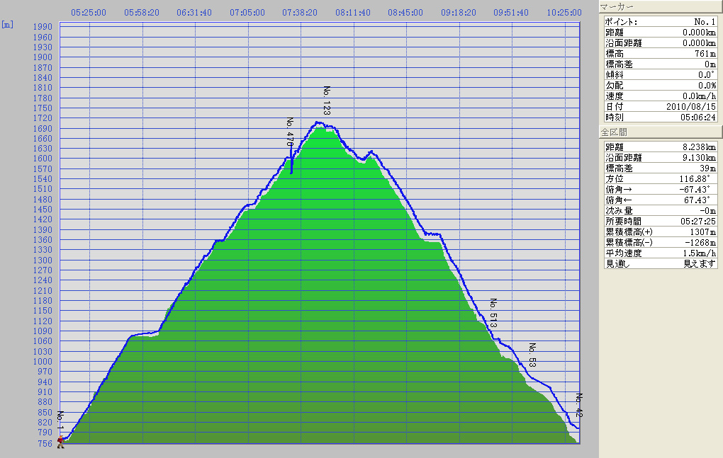 朝5でスタートしたので涼しいうちに登山出来て助かった。但し下のほうでは蚊が多く虫除けスプレーがあればよかった。