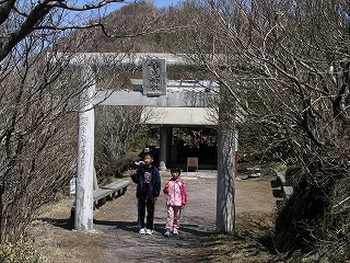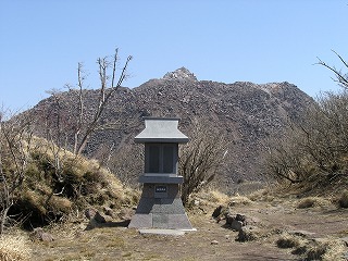 山頂のすぐ下の祠。後ろが平成新山12;19