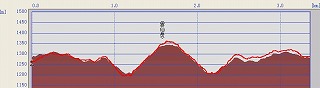 山頂より仁多峠方面を望む。仁田峠へのルートが見える。12:15