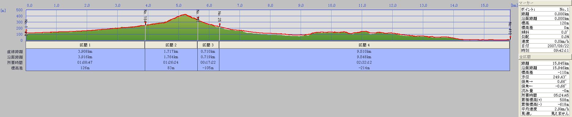 GPSで測定したルート(一部、谷が深くGPSが衛星を見つけられなかった場所あり)クリックすりと大