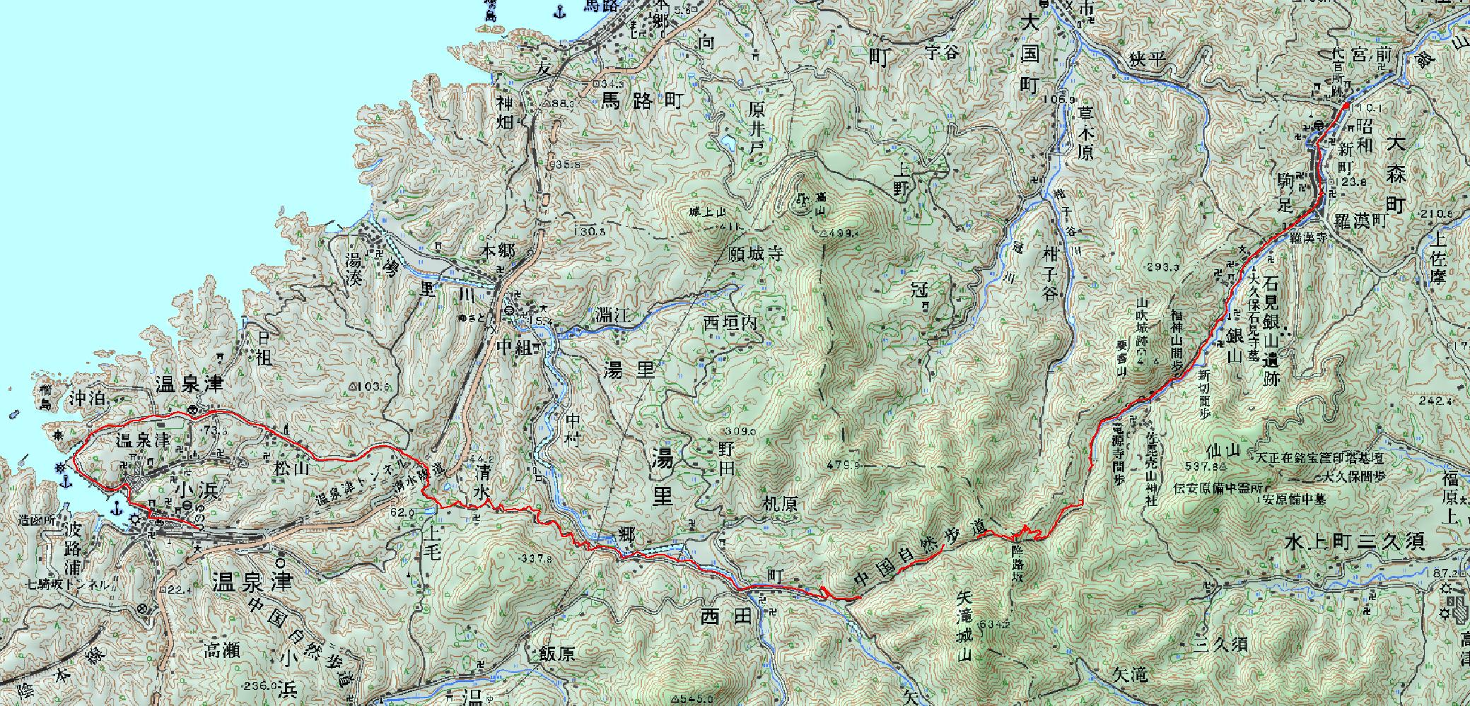 大田市大森町(大森代官所跡)から降路坂をとおり温泉津港まで歩きました。
