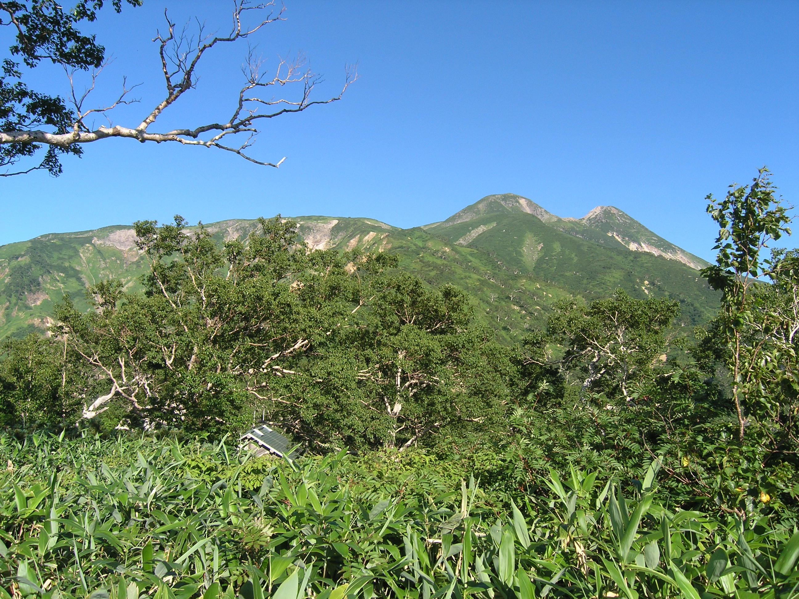 7:43 大倉山より剣ヶ峰と御前峰。手前に大倉山