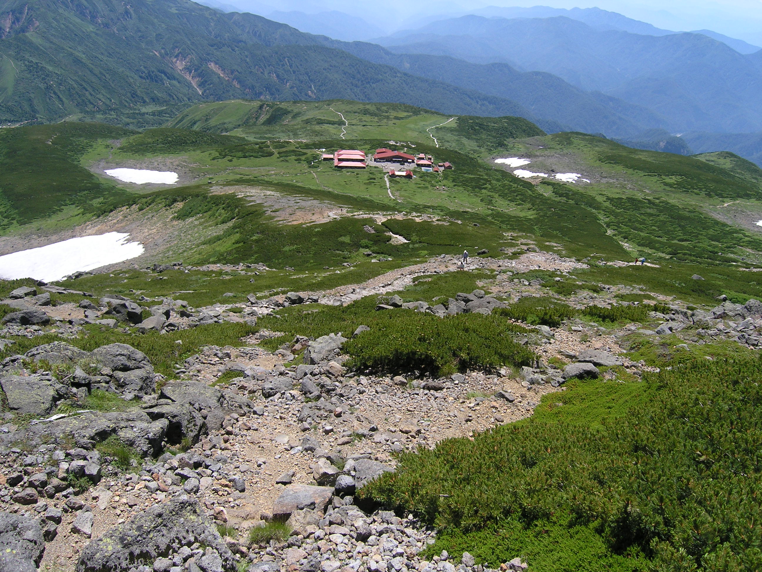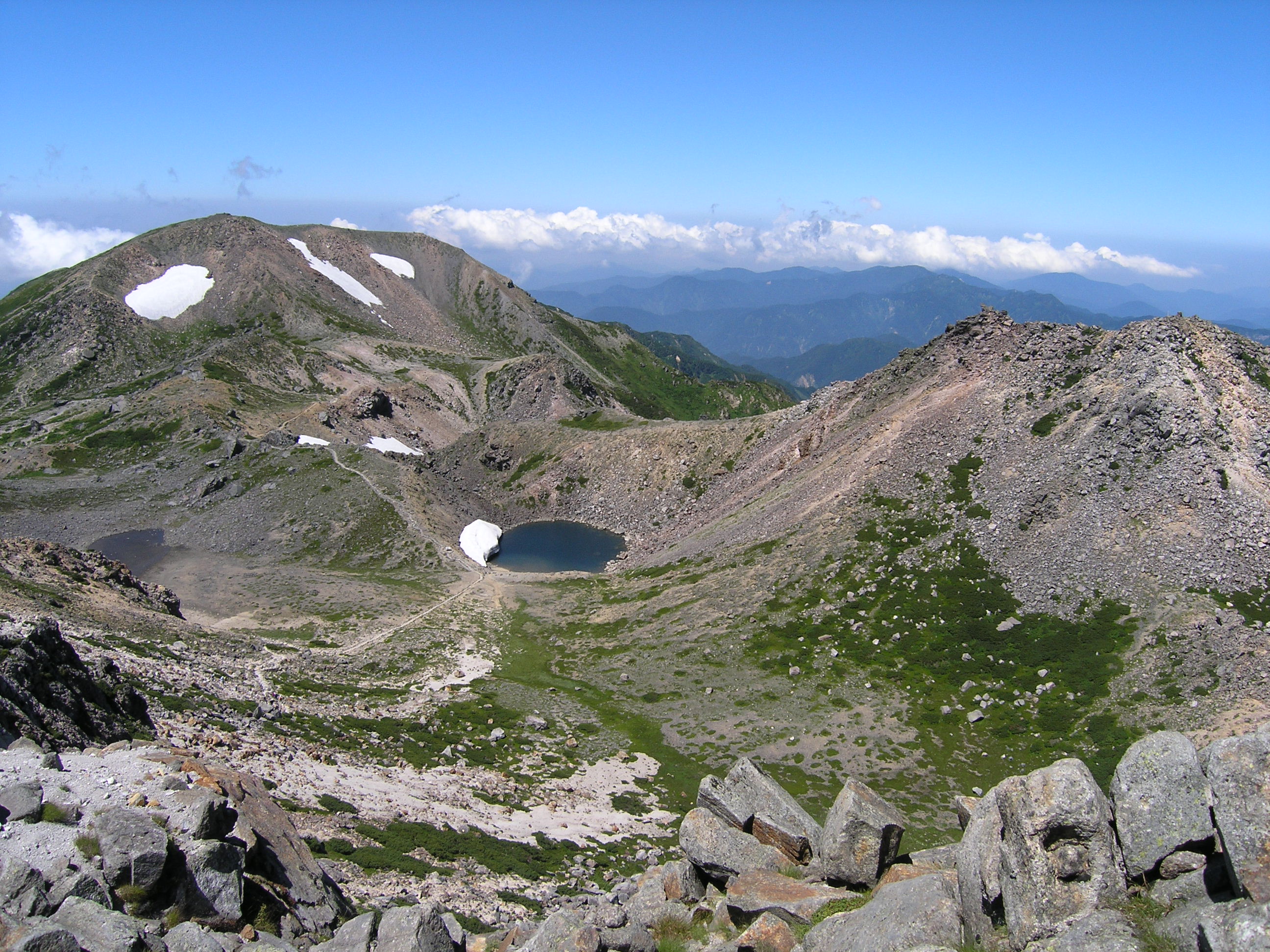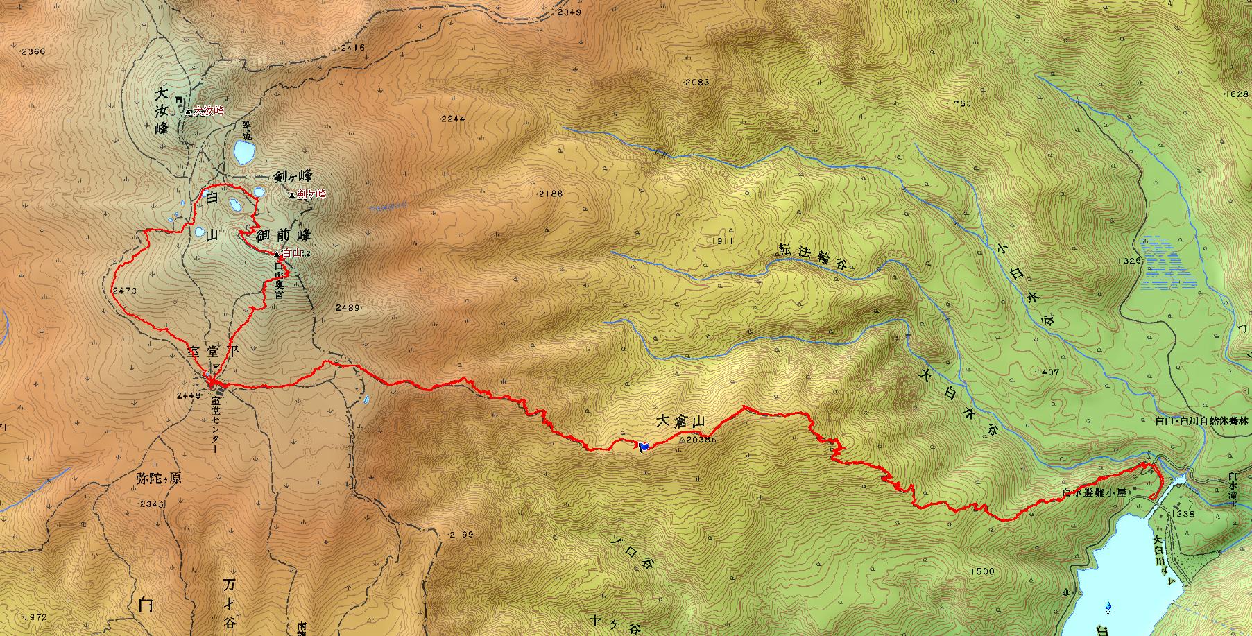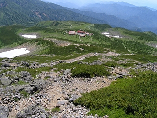 8月11日岐阜県側の白水湖畔ロッジにとまり、翌朝3:30起床。車で準備をして4:03出発。7:40大倉山非難小屋到着。10:05室堂到着。天気は快晴だが寒い。重ね着をする。登り6時間。休憩の後、御前峰、お池めぐり、お花畑コースのまわり、山小屋にはいる。