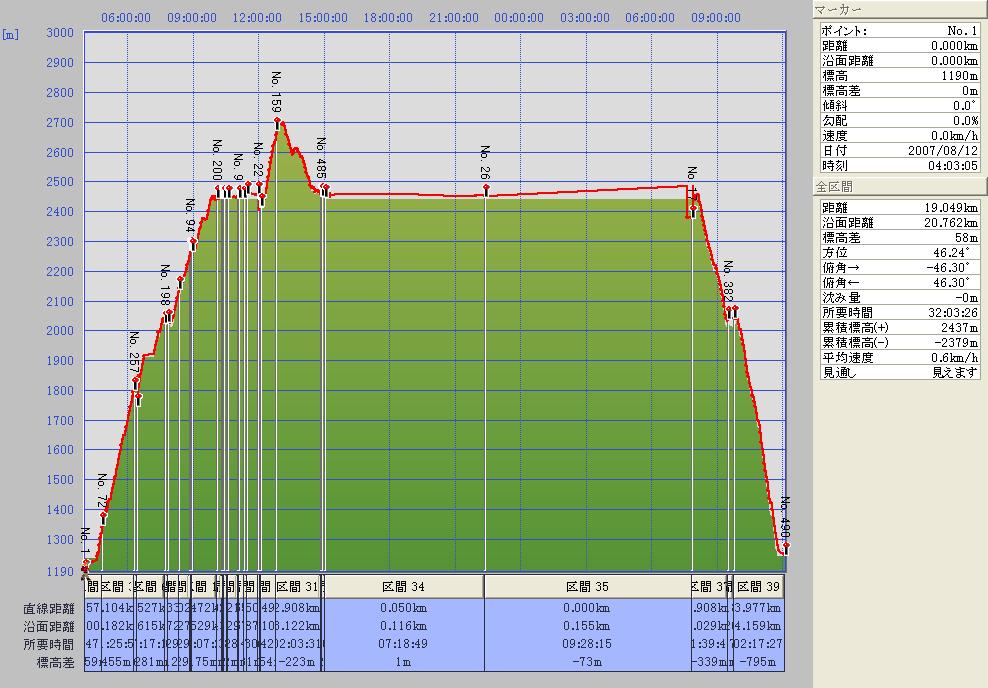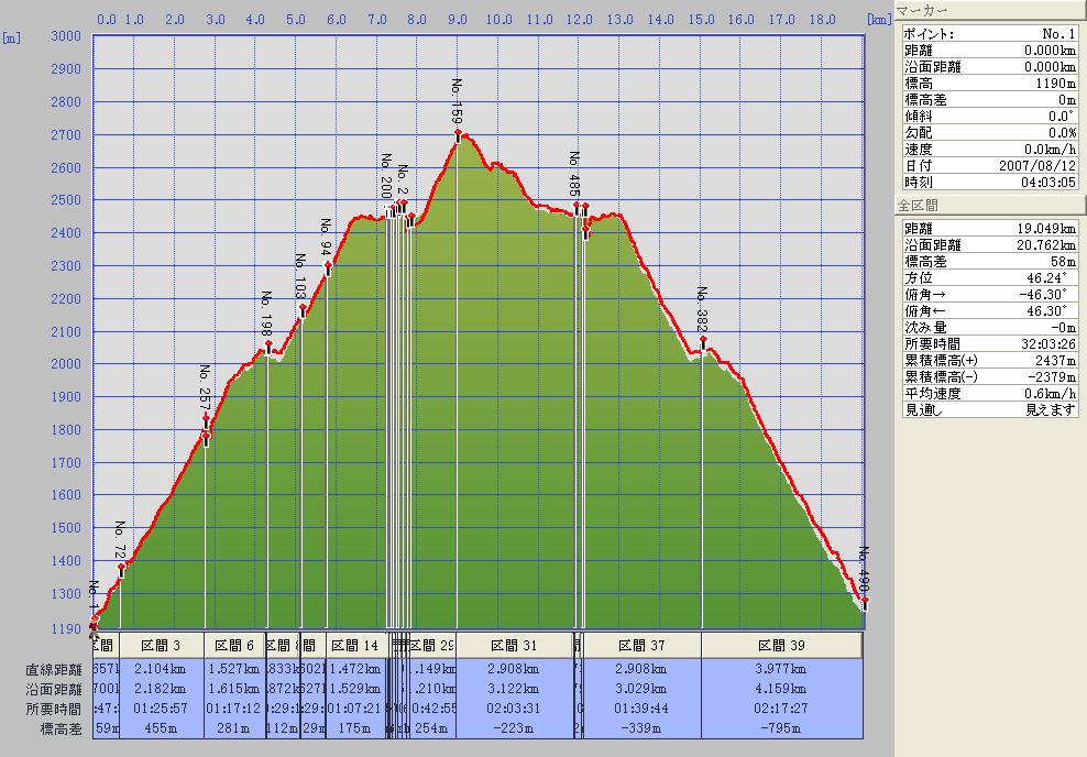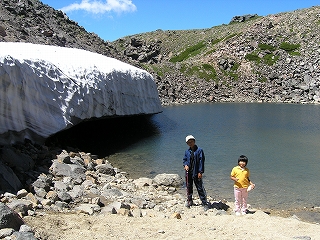 13日はゆっくり起床し朝食の後、霧の中雨具をつけ下山、7:50下山開始。途中霧もはれ、11:45白水湖畔下山。 |