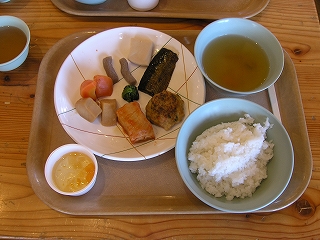 16:49 夕食。ご飯と味噌汁お代わり自由。