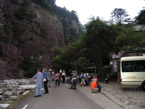 渓泉亭のところまでマイクロバスで送ってもらい出発 |