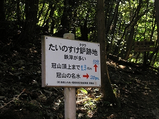 | 国道261号の登山口への入り口。江の川方面へ向かって右側に看板があります。ここから分岐ごとに看板があるので安心して登山口までいける。 | 冠山登山口。道路が少し広くなっていて、数台車がとめられる。9:30 |