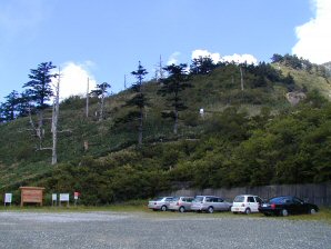 | これから登る瓶ヶ森 | 広い駐車場 |
