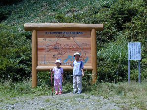 | 駐車場の登山口 | 駐車場の上の瓶ヶ森林道の登山口 |