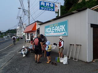 | GPSで記録したルート(青が往路、赤が復路)拡大図有 | 8:17 パドルパークにて準備 | |