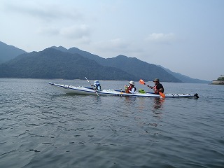 | 15:30 再度海水浴、子供は元気!! | 16:24 艇を二つ合わせてライフジャケットを付けて海に入り、カヤックに乗り込む練習 |