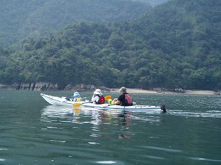 | 10:01 | 10:21フェリー航路は通れない為桟橋の下を通過 | 13:03 包ヶ浦海水浴場 子供たちはほとんど海の中でした。ライフジャケットを付けたままなので溺れる心配なし。 |