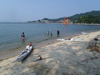 8:00パドルパーク集合 代表の久保田さんと、小学生2とパパの家族と私。 包ヶ浦で東京からの小学生2人を乗せて帰るとのこと。 8:50 出発 9:40 宮島の鳥居近くに上陸 おひさまパン工房 10:10 再出発 11:15包ヶ浦海水浴場 東京からの女の子2人合流 14:20 出発 15:20 鳥居をカヤックでくぐる 15:25〜15:45再度水遊び 16:35パドルパーク |