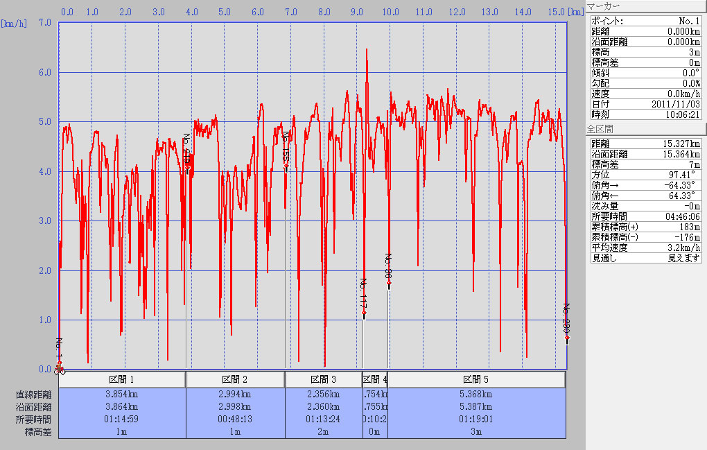 | GPSの記録(縦軸=速度)(拡大図有) |