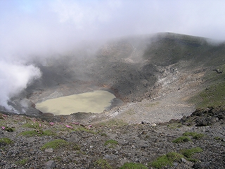 10:18 霧が晴れ新燃岳の火口が見える