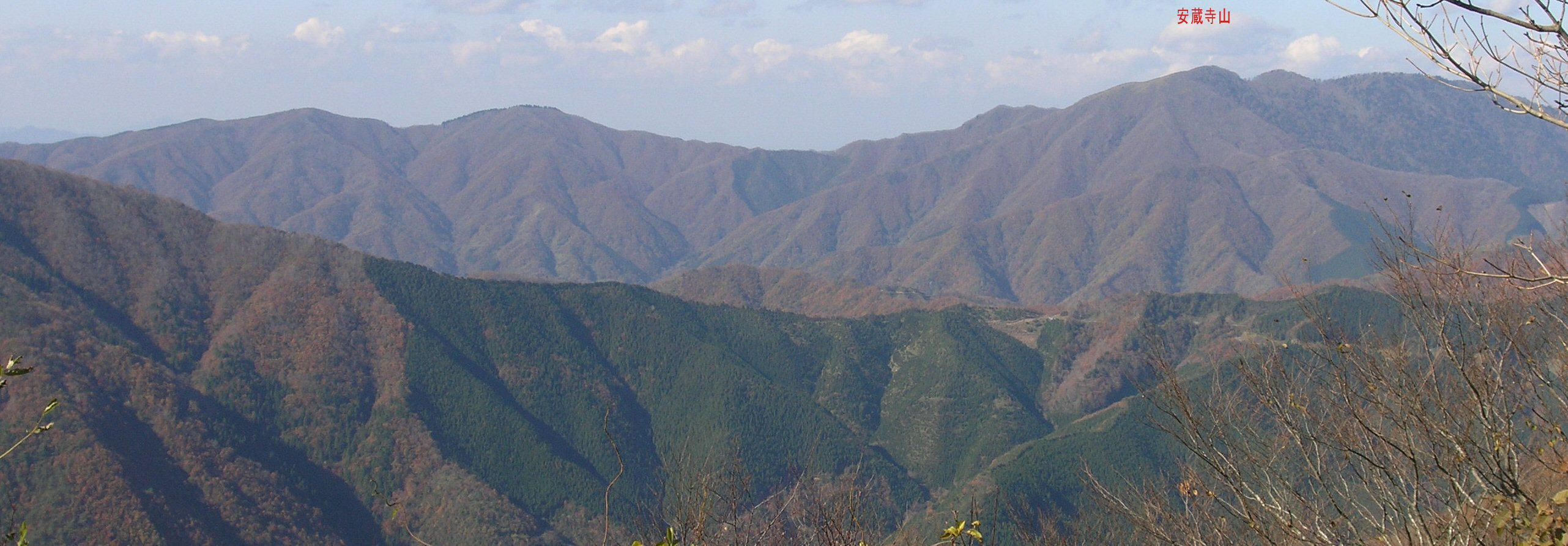 北西を望む北北東に安蔵寺山(拡大写真あり)