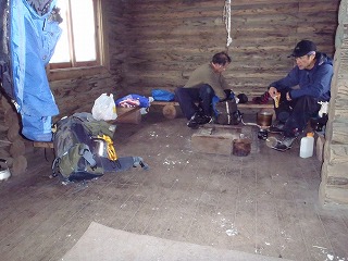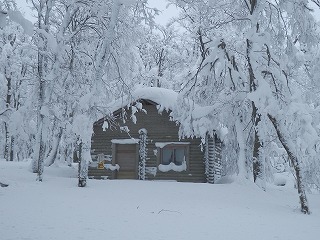 | 11:25 山頂 | 11:27 山頂 | 11:40 避難小屋で昼食 -6度 |