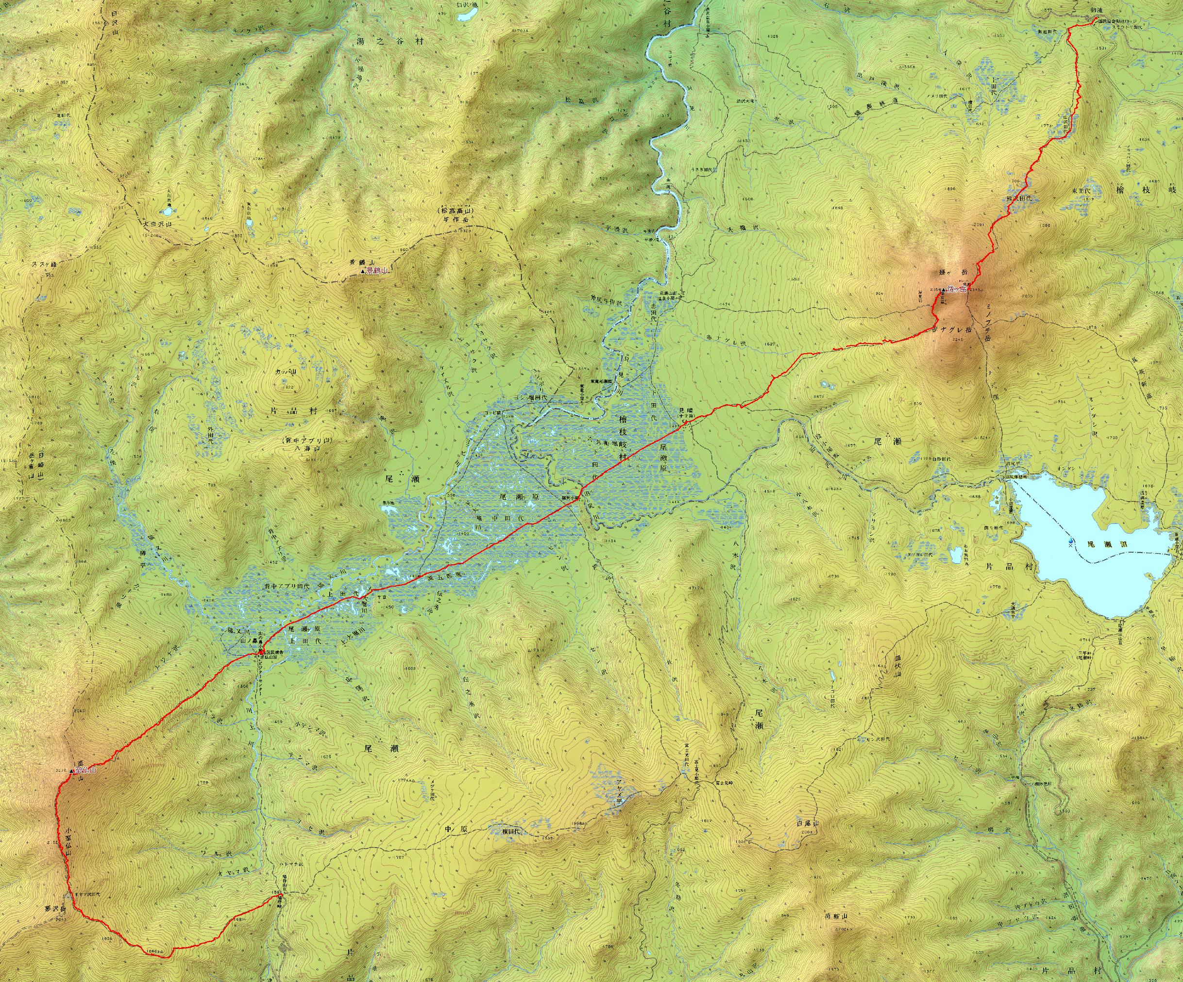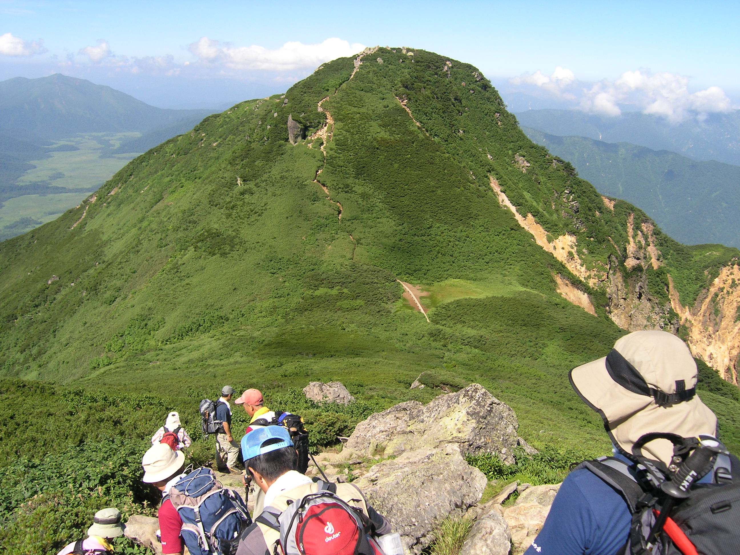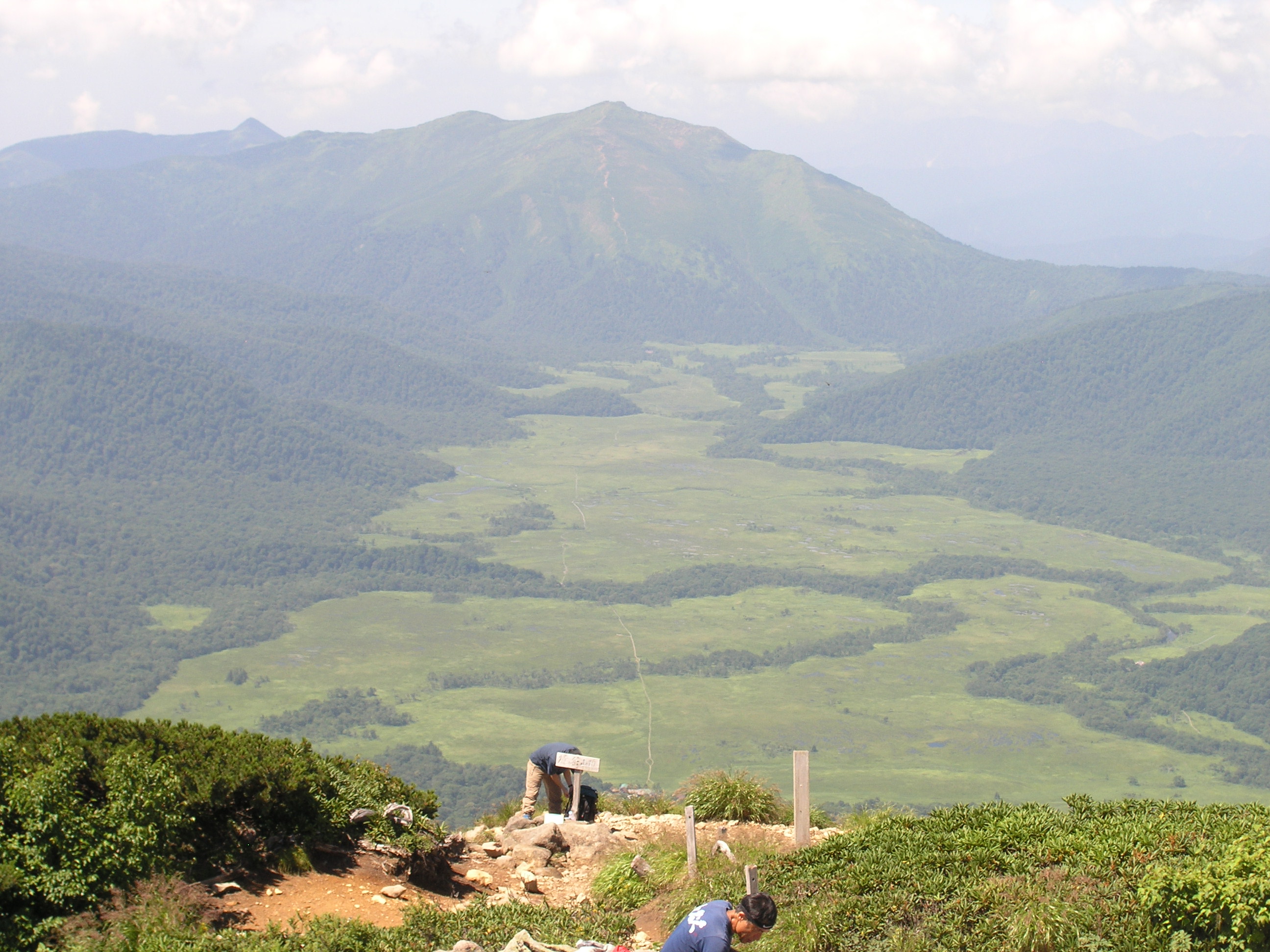 | 神名火山の会の尾瀬山行に参加させて頂きました。総勢19名を2班に分けて行動、天候に恵まれ行動中、雨具を使用することもありませんでした。 7日5:10尾瀬御池→6:15広沢田代→7:20熊沢田代→9:15俎ー→10:00柴安ー(昼食)10:55→尾瀬小屋13:55 8日4:55尾瀬小屋→5:25竜宮十字路→6:00尾瀬ヶ原三又→6:45山の鼻小屋(朝食)7:20→9:16(1866m)熱中症患者9:55→11:20至仏山(昼食)11:48→12:30小至仏山→13:00オヤマ沢田代→14:15鳩待峠 |
