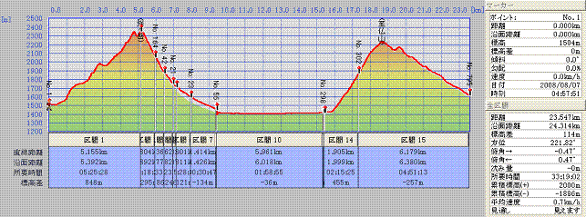 | GPSで測定した記録横軸=距離 | クリックすると大きい図 |