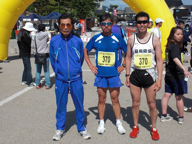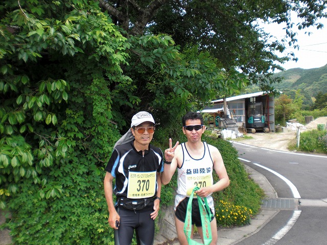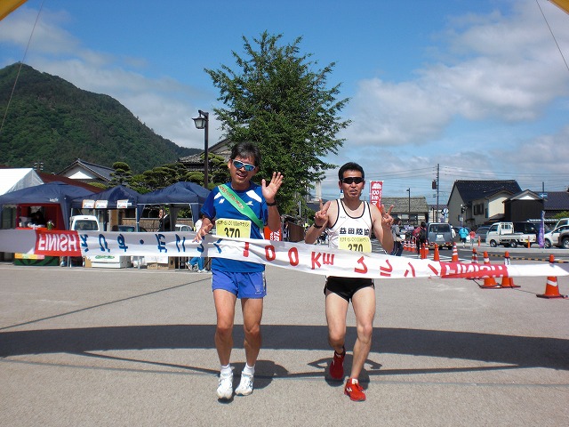55k地点師匠はまだまだ元気 70k手前長い峠 流石の師匠もちょっと疲れました 70k師匠と弟子のリレー 師匠のスピード落とせの指示を無視 80k地点元気もここまで 事務局から送って頂いた写真 85kでヘロヘロ 弟子よ修行が足りんぞ ラスト5kは一番元気な兄貴分 頼りになします ゴールで記念写真100k楽しみました コースリンク