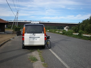 | 8:35飯田角井大橋スタート | 8:52 益田市横田町の匹見川を渡ったところ | 9:00 歩道に草が茂っていて走りにくい |