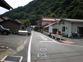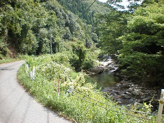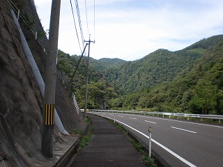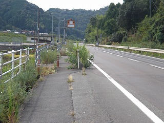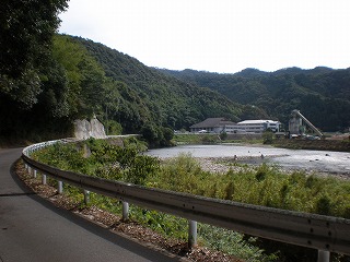 | 9:39高津川の左岸をはしる。全方に日原中学 | 10:08 国道187号の歩道を走る | 10:21 左鐙で県道189号にはいる |