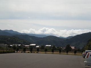 | 9:21同門の歩道をはしる | 9:24 道の駅シルクウェイ日原 | 9:29 安蔵寺に雲がかかっている |
