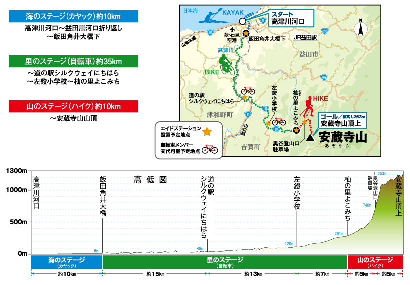 | 自転車(横田付近) | チェックポイント道の駅 | 左鐙小学校到着 |