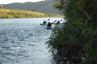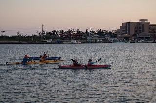 | シーカヤックはスイスイ進んでいます。 | シングルは最後の出発で130番の自分は最後から5番目。ほとんどビリでマイペース。 | |