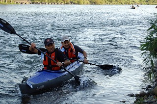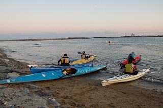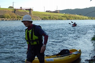 ![]() 出発まえ。左右のカヤックと比べるとでかい。 |
