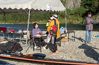 | 市長チームも到着 | 私もようやく川を横切る。 | ようやくカヤックのチェックポイント 自転車置き場(車道)に自転車装備も有ると思い自転車置き場に移動後、このチェックポイントに有るとわかり再度とりに降りる。 |