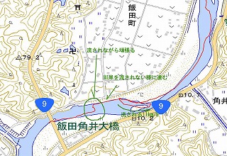 ![]() 最後の瀬の流れの速い所で流されました。2度めは流されない様に慎重に右川を進み多少流れが緩やかなところで流されながら頑張った記録です。 |