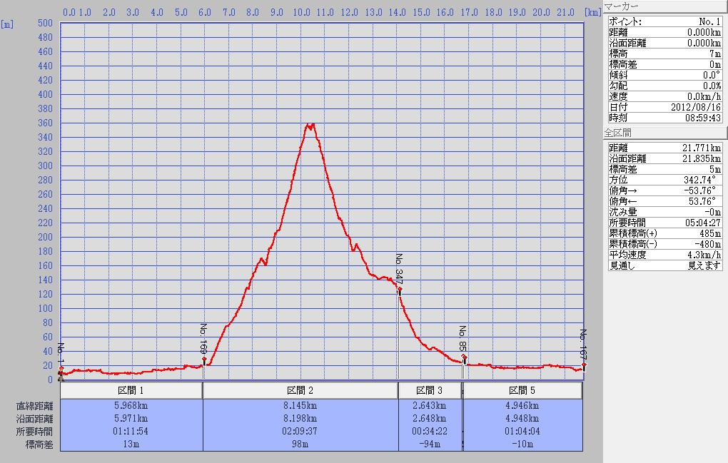 ウオーキング 21.7km 標高358.8m