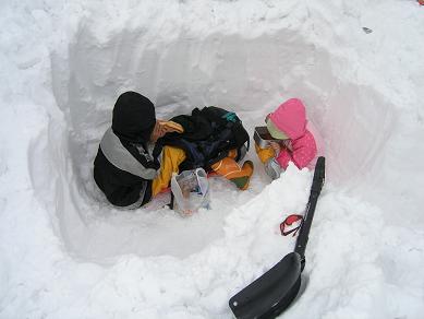 雪穴の中でお昼ご飯(むすびとラーメン)