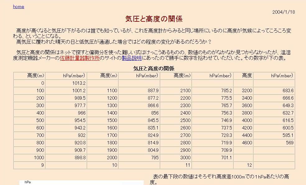 気圧と高度の関係 参考 http://yamatabi.que.ne.jp/ ![]() |