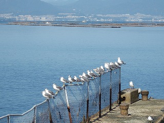 | 9:11 遠くに広島港(望遠で見た写真有) | 9:31 | 9:35 ウミネコが並んで休憩? |